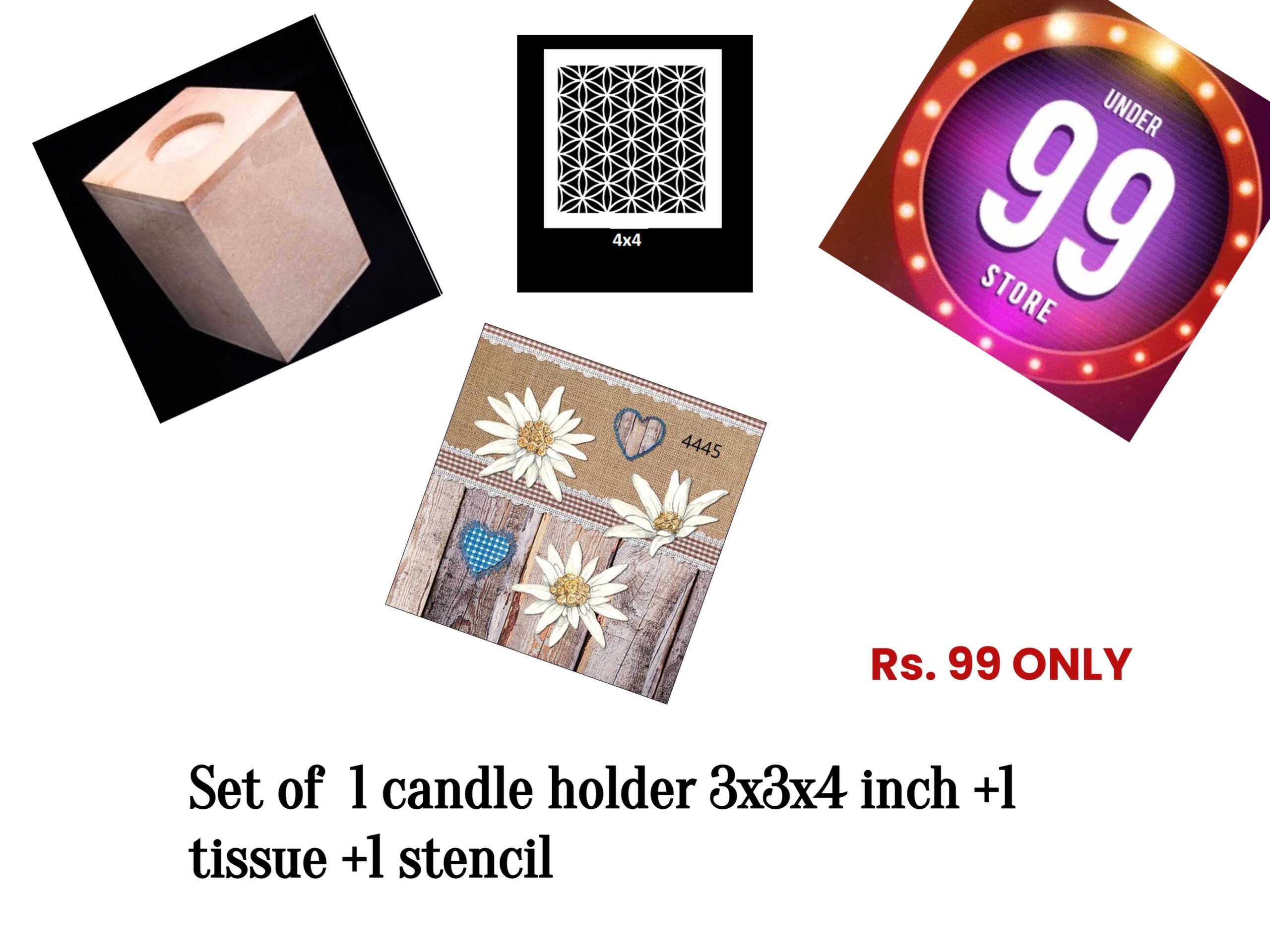 Combo of Mdf t light candle holder  base , decoupage tissue and one stencil